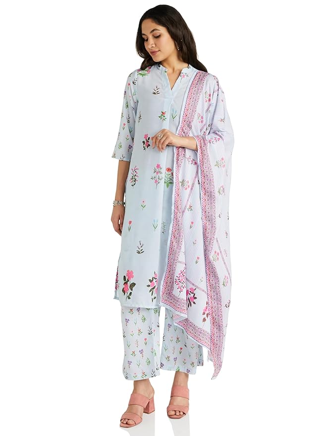 Women's Cotton Blend Mughal Print Kurta Pant Set with Dupatta