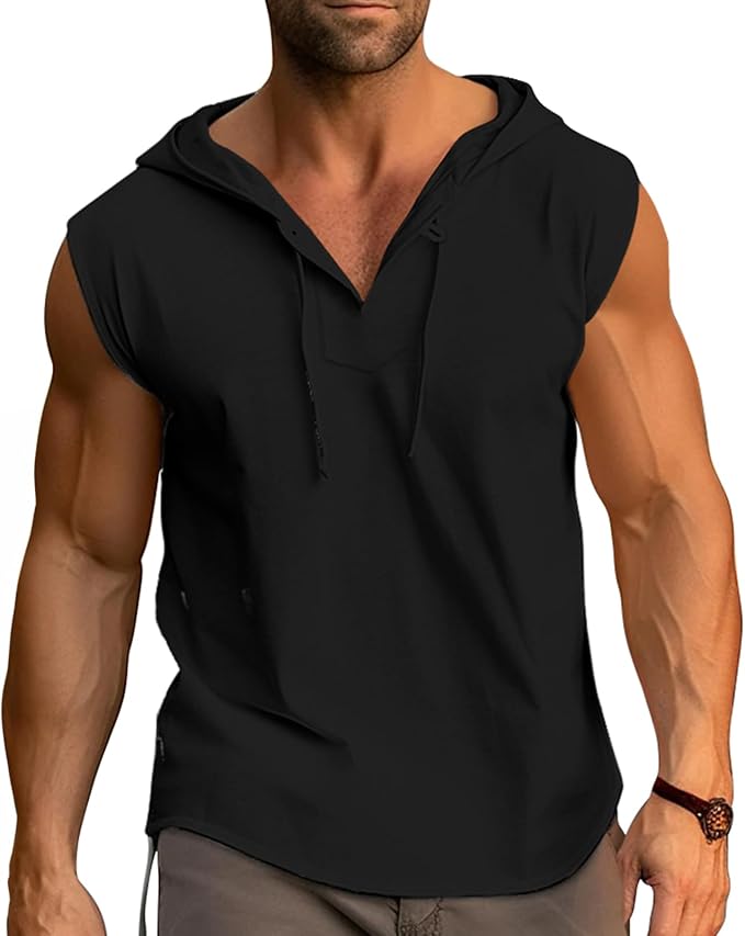 Mens Vest Tank Tops Summer Sleeveless Hoodies Cotton Gym T Shirts