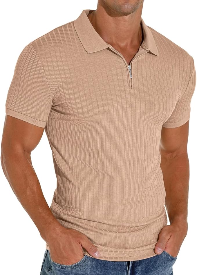 Men's Polo Shirts Zip Classic Stretch Slim Fit T Shirts