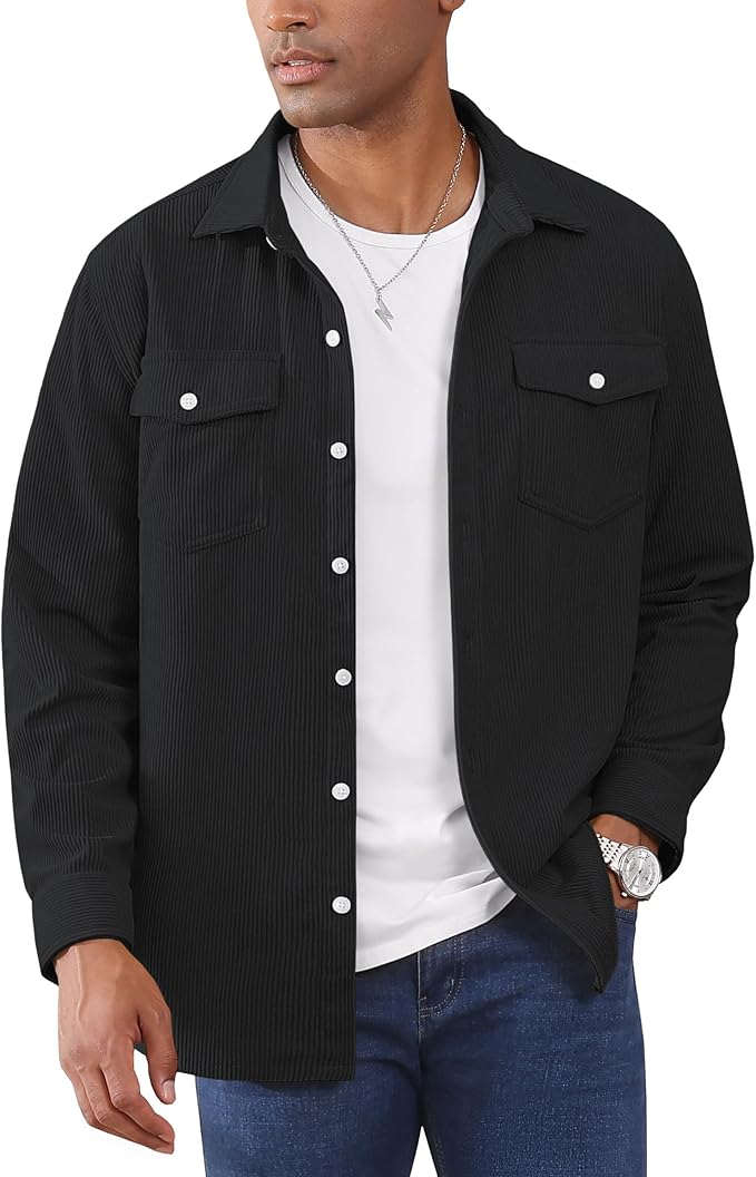 Men's Corduroy Shirt Casual Long Sleeve Shacket Jacket