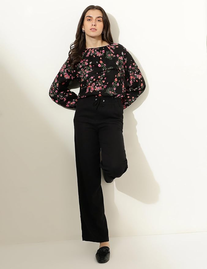 Women's & Girls' Tied Hem Puff Sleeve Slim Fit Crop Top