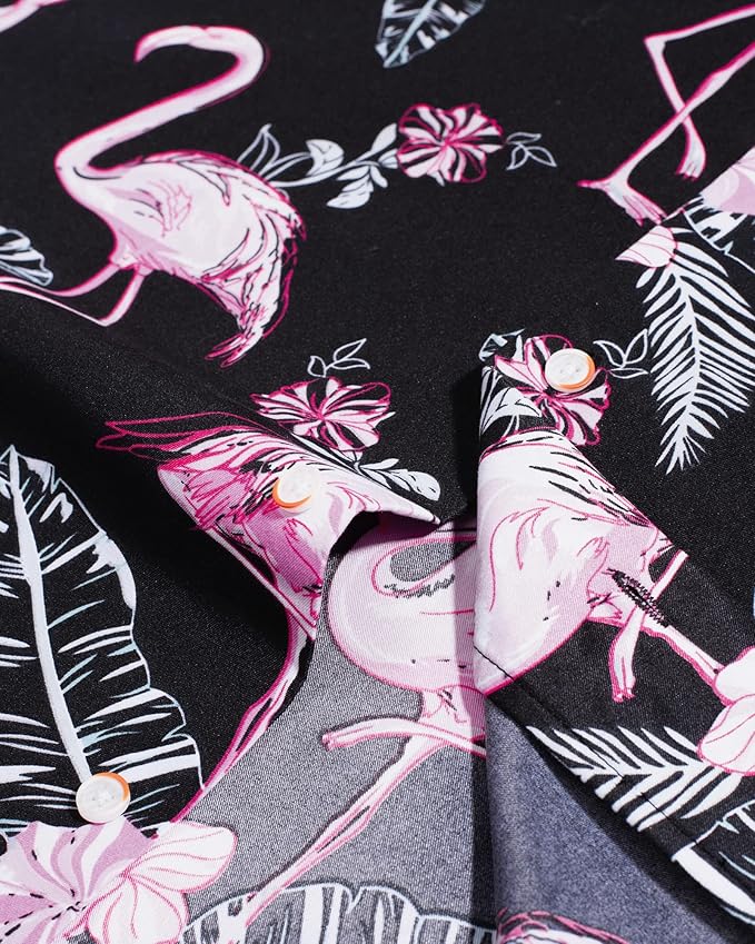 Exquisite Print: This mens hawaiian shirts and shorts set is eye-catching and funny, lound and bright colors with flamingos, palm trees, and flowers print, creating a tropical leisure style that evokes the idea of outings with friends