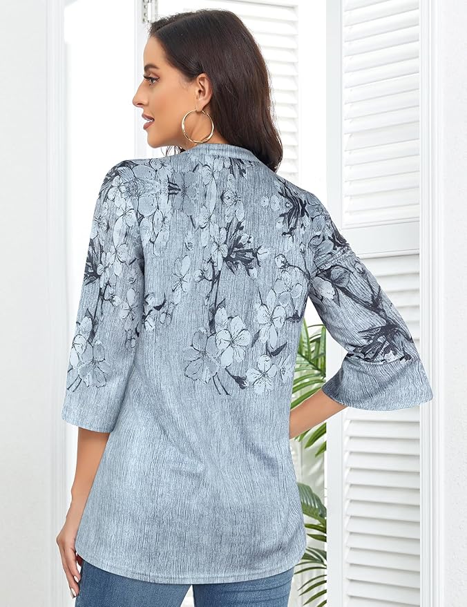 ?【Design】3/4 Sleeve, Sexy V Neck, Loose Fit,Ladies Tops,Blouses for Women UK,Floral Tunic Tops,Flowy Drape Flouncing Hem. This is a very comfortable and lightweight business casual tops for women.